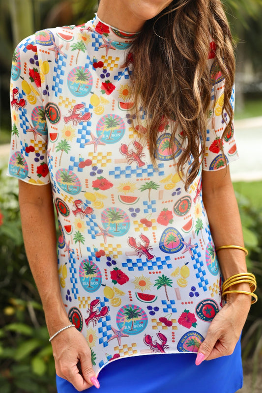 Kora Short Sleeve Mesh Top- Amalfi Mood