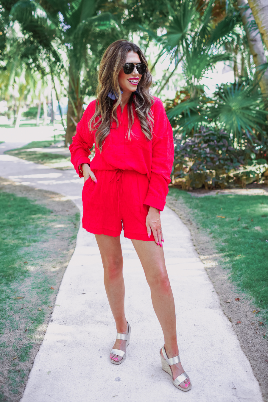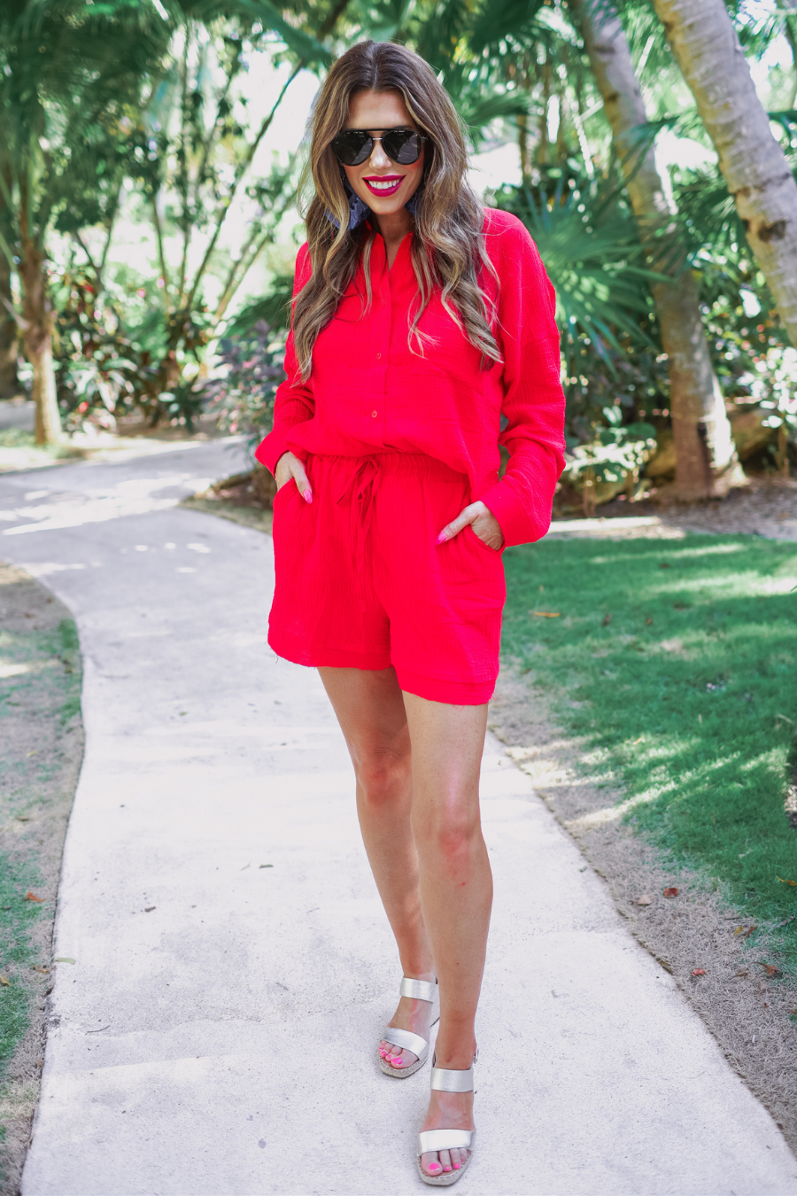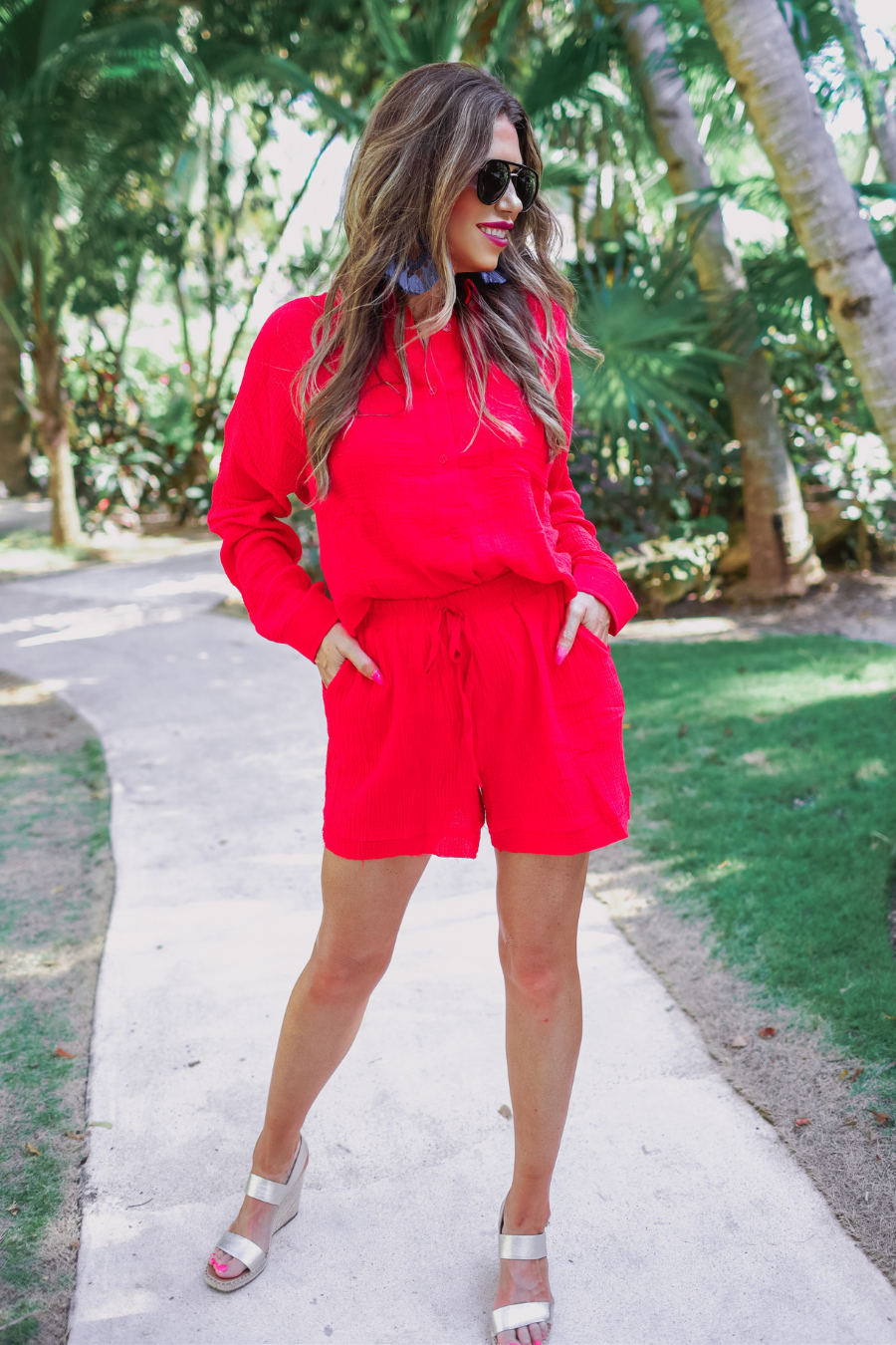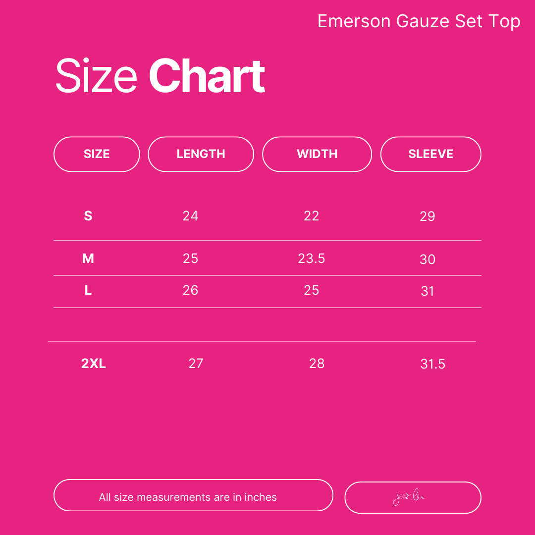 Step into comfort and style with our Emerson Gauze Set. Made with lightweight and breathable gauze material, this set includes a long sleeve top with a collar and buttons, paired with shorts featuring pockets and a functional drawstring. The raw hem adds a touch of edge to this versatile and effortlessly chic outfit. Order yours now and be the first to experience the ultimate in comfort and fashion!