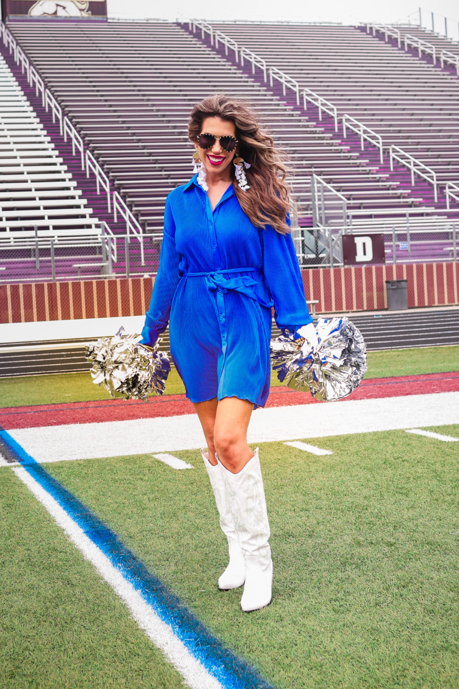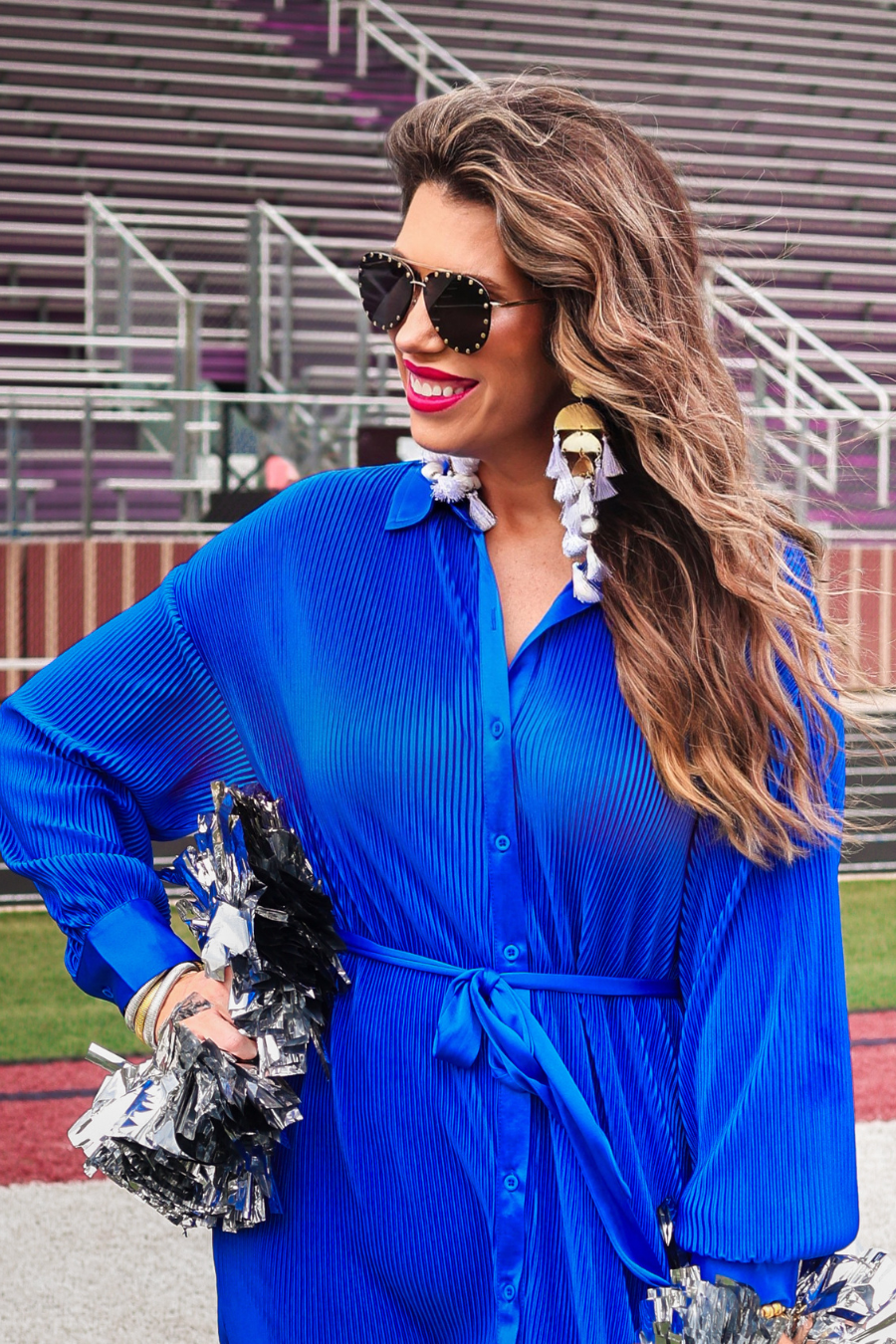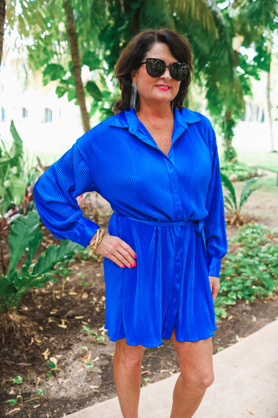 This Hot Shot Pleated Tie Dress got ya feelin' yourself! This stylish dress features a pleated skirt, a removable waist tie, and a classic collar and satin cuffs for a truly timeless look. Plus, the functional buttoned front lets you dress it up or down as you please. Knock 'em dead!