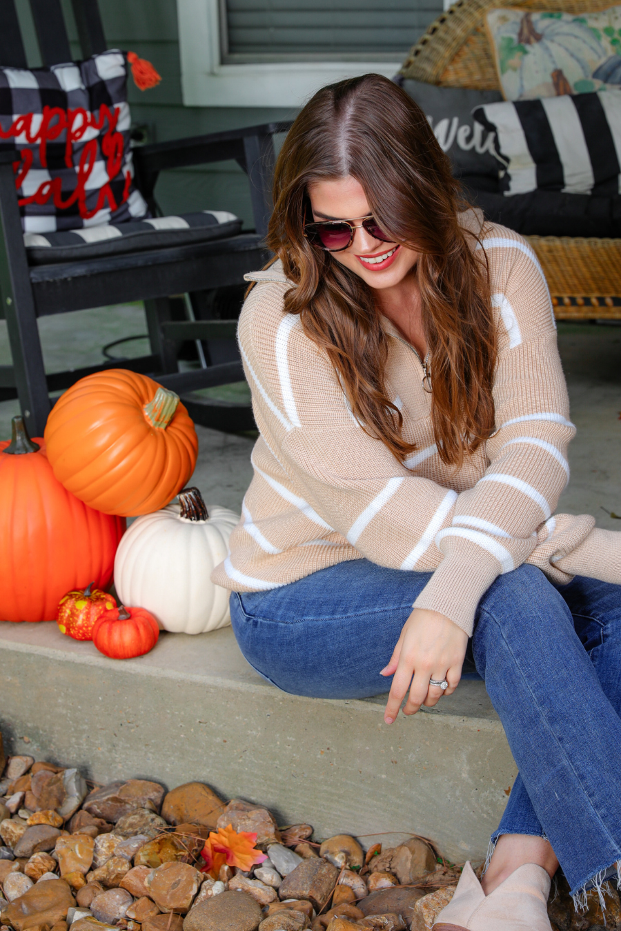 This stylish Jameson Quarter Zip Pullover is perfect for any occasion. Its classic striped quarter zip design provides a polished look with its collar and knit fabric. Effortlessly transition from day to night with this versatile piece!