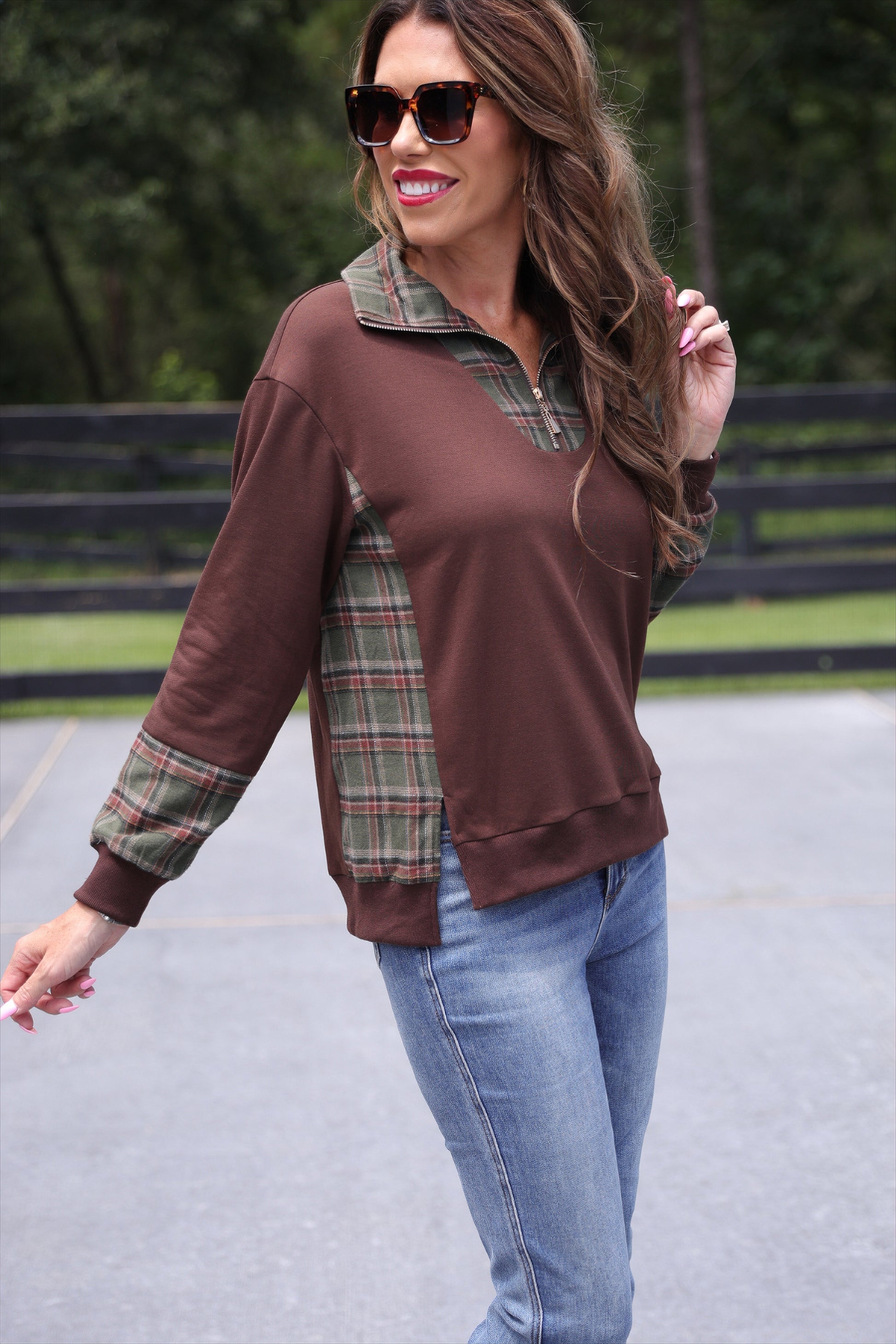 | Juniper Plaid Pullover- Chocolate |