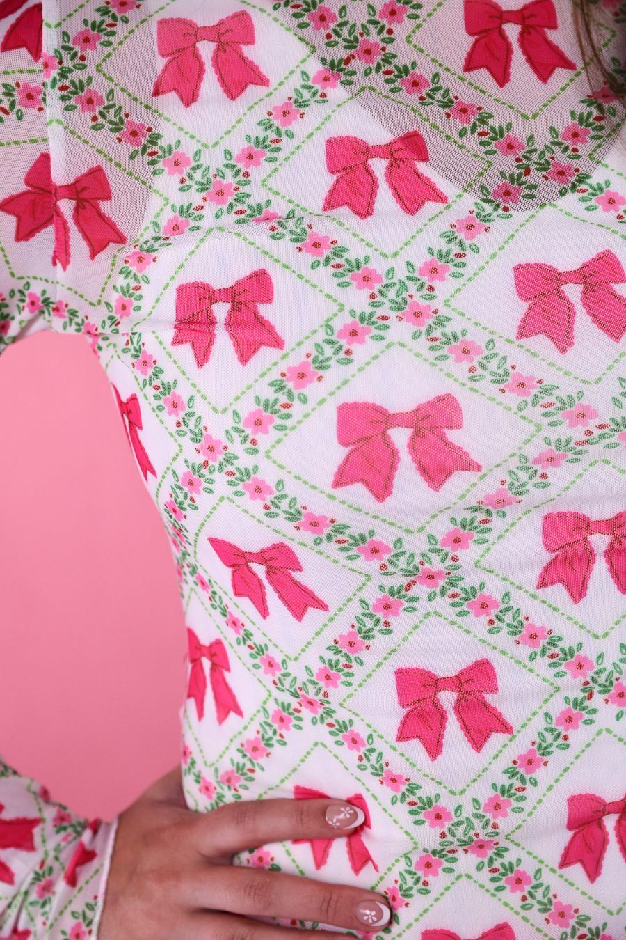 | Keigan Mesh Top- Pretty Lattice Bow |